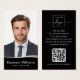 Modern, vertical, black and silver gray (printed color gradient, not real foil) curved border business cards with your name and title on the front and customizable template fields for your contact information, logo and QR code on the back. You can change background and font colors, move and resize elements with the design tool.