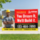 Mit diesem auffälligen Banner können Sie Ihre Marke bewundern und stärken! Ideal für Baustellen und Messen, ist es eine gute Möglichkeit, Ihr Geschäft zu fördern. Ein eingängiger Slogan treibt die Verlobung voran und ermutigt potenzielle Kunden, sich zu vernetzen. Ideal für Generalunternehmer, echte Anwesen-Entwickler, Fachfirmen und Design-Building-Projekte. Diese Vorlage ist einfach mit Ihrem Firmenlogo, Dienstleistungen, Foto und Kontaktdaten angepasst. Druckfarben: rot, schwarz, gelb und weiß. Rot ist eine dynamische Farbe für Bauunternehmen, da es Stärke, Energie und Leidenschaft bedeutet. Bestellen Sie die Kollektion für populärere Produktideen und Produkte zum Verkauf online, die für die Bauindustrie konzipiert sind.