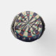 Vorgestellt ist ein Dartboard mit einem Dartboard im Bulls-Auge und einem invertierten Dart Logo.