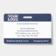 Behalt in Ihrem Krankenhaus oder in der medizinischen Praxis mit horizontalen Foto-ID-Abzeichen, die das Foto, den Namen, die Jobbezeichnung und die ID-Nummer Ihres Mitarbeiters sowie das Firmenlogo und den Firmennamen enthalten. Sie können auch eine Abteilung, wenn Sie möchten. Ideal für eine Krankenschwester oder ein anderes Personal. Auf der Rückseite können Sie weitere Informationen hinzufügen, wie z.B., wo das Abzeichen zurückgegeben werden soll, wenn es verloren geht. Passen Sie es mit einem Foto, einem beliebigen Logo und einem benutzerdefinierten Text in der Sidebar an. Das quadratische Foto auf dem verlassen hat einen dünnen weißen Rand, umgeben von marineblauen Streifen über den oberen und unteren und dünnen Marine Linien an seinen Seiten. Ein weißer Block rechts in der Mitte markiert den Jobtitel, die ID-Nummer und das Ablaufdatum in dunkelblauem Text. Der Name des Mitarbeiters und der Krankenhaus- oder Geschäftstext sind in dunkelblau weiß. Ihr Logo ist oben auf der Marine verlassen, sodass weiße oder helle Logos am besten funktionieren. Sie können Hintergrund- und Textfarben so ändern, dass sie mit Ihrem Branding übereinstimmen, indem Sie "Klicken Sie, um weitere Anpassungen vorzunehmen" gestochen haben. Sie können auch eine Metallklammer, einen Lanyard oder eine einziehbare Befestigung in der Sidebar hinzufügen. Weitere ID-Abzeichen finden Sie in der Rocklawn Arts Kollektion. Copyright ©Claire E. Skinner. Alle Rechte vorbehalten.