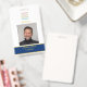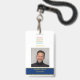 Ein individuelles ID-Abzeichen mit einem persönlichen Foto und einem Platz, um Ihr Logo zu setzen. Die Farbe und das Design eignen sich für ein Bootgeschäft oder ein berufliches Unternehmen. Elegantes und dennoch berufliches Design.