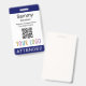 Personalisieren Sie unser berufliches Abzeichen mit Ihrem Logo, dem Teilnehmernamen und anderen benutzerdefinierten Texten. Es ist aus Kunststoff pvc und mit einem Lanyard, Clip oder einer einziehbaren Rolle erhältlich. Design in marineblau und anderen Farben mit modernem minimalistischem Design von MISOOK. Alle Farben sind anpassbar. Optional können Inhalte auf der Rückseite hinzugefügt werden. Einfache Anpassung des Besuchertitels (VIP-Gast, Besucher, Lautsprecher, etc.). Keine Mindestbestellmenge und keine Einrichtungsgebühr.