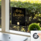 Elegantes Weihnachtsfenster für Unternehmen. Schwarzer Hintergrund, goldener Text Feiern Sie die Saison mit unserem raffinierten und modernen schwarzen Hintergrund Weihnachtsfenster, speziell für Unternehmen entwickelt. Personalisieren und fügen Sie Ihr Logo und Ihren Text.