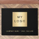 Schwarzer Hintergrund, goldener Text. Personalisieren und fügen Sie Ihr Firmenlogo, einen Text (oder löschen, wenn nicht gewollt) ein