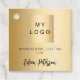 Imitate mit goldenem Hintergrund. Schwarzer Text. Personalisieren Sie Ihr Firmenlogo, Text und Name/Unterschrift und fügen Sie es hinzu. Zurück: QR-Code auf Ihrer Website oder sozialen Medien, Text.