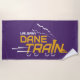 Das Logo der UAlbany Dane Train zeichnet sich durch fett formatierte, eckige Schriftzeichen aus, in denen die Worte "Dane Train" in großen, lila Hauptstädte zu finden sind. Darüber steht "UAlbany" in einem kleineren, goldenen Schriftart. Das Design umfasst die Silhouette eines Zuges, wobei der Rauch vom Rauchstein abgeblasen wird. Die Räder des Zuges sind in Gold dargestellt, was das Erscheinungsbild der Bewegung verleiht, und goldene Streifen auf den links betonen Geschwindigkeit und Dynamik. Das Logo strahlt ein dynamisches und dynamisches Ambiente aus, das Elemente der Kraft und Bewegung vereint, die einen Sport- oder Teamgeist widerspiegeln.