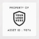 Einfache individuelle ID-Markierung für Unternehmen, um Eigentum Ihres Unternehmens mit einem modernen minimalistischen Stil zu kennzeichnen, den Sie einfach mit Ihrem Firmenlogo und Ihrer Asset-Nummer aktualisieren können.