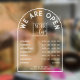 Elegante Öffnungszeiten Geschäftsleute mit weißem Text und einem bogenförmigen Rahmen mit kurvenförmigen Sprichworten "We are open" für Ihre Schaufenster oder Handelstür mit Öffnungszeiten pro Tag, Ihre Telefonnummer und Website zusammen mit Ihrem Firmenlogo.