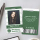 Diese Foto-ID-Abzeichen haben ein waldgrün-weißes Thema. Sie beinhalten Foto, Namen und Jobtitel Ihres Mitarbeiters an der Vorderseite, sowie den Namen des Unternehmens/Unternehmens und des Firmenlogos. Die Rückseite enthält Platz für "falls gefunden"-Informationen (einschließlich Adresse und Telefonnummer), Platz für eine ID-Nummer und einen Bar-Code. Das Design umfasst auch einen Hintergrund für Rastermuster und ein Thema für Linien-Graphen. Verwenden Sie die leicht zu personalisierende Vorlage, und verwenden Sie dann das Entwurfswerkzeug, um detailliertere Änderungen vorzunehmen (z. B. das Anpassen der Größe des Logos oder Strichcodes oder das Löschen und Umordnen von Elementen). Dieses auffällige Design ist perfekt für einen Büromanager, einen Verwaltungsassistenten, eine Führungskraft oder einen beliebigen Mitarbeiter.