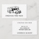 Trendy Food Truck Illustration, berufliche Visitenkarten. Kontur von Schwarzlastern auf weißem Grund. Text-Schriftart-Stil und Hintergrundfarbe können angepasst werden.
