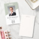 Dieses benutzerfreundliche Grün des Mitarbeiternamens und des Foto-Abzeichen mit Ihrem Firmenlogo und QR-Code oder Bar-Code ist einfach zu personalisieren. Erhältlich mit verschiedenen Hintergrundfarben und Anbaugeräten. Keine Mindestbestellmenge.