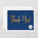 Personalisieren Sie diese einfache und einfach zu handhabende danke flache Kartenvorlage mit dem Logo, der Website, der Nachricht, dem Firmennamen, der Website und dem Handle der sozialen Medien (löschen Sie alle Symbole, die nicht mit dem Button "Weiter anpassen" anwendbar sind). Lass deinen Kunden, Kunden, Patronen, wissen, dass du dankbar für ihre Unterstützung bist, personalisiere die Danksagung, wenn nötig. Einfache, schicke, moderne Typografie in Imitaten Golddruck auf Blue. Tipp: Verwenden Sie die weiße Version Ihres Logos, gerettet als PNG auf einem transparenten Hintergrund.