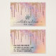 Diese geistreiche und glamouröse Armband-Display-Karte ist der ideale Weg, Ihre Verpackung zu stilisieren und Ihren eigenen persönlichen Flair und Ihre Persönlichkeit hinzuzufügen. Es zeigt schicke, hübsche, einzigartige und luxuriöse Imitate, die auf einem holografisch rieszierenden Folienhintergrund funkelnd Glitzer-Tropfen in Regenbogenfarbe gedruckt wurden. Die Typografie ist ein elegantes kursives Drehbuch mit einem modernen Serif-Schriftart, um zu entsprechen. Die Farbgebung umfasst Rosa, Pfirsich, Blau, lila, Gold und Korallen. Auf der Rückseite enthält es Kontaktinformationen, die komplett oder personalisiert zu Ihren Daten geändert werden können. Es ist eine berufliche, elegante und stilvolle Art, Ihr Produkt mit Stolz zu präsentieren. Passen Sie dieses Design einfach mit Ihrem eigenen Firmenlogo an. (Armband-Schnittlinien sind nur bedruckte Marker, das Schneiden muss vom Kunden mit einem Exacto-Messer abgeschlossen werden) **Passende Halskette und Ohrring-Display-Karten sind verfügbar. Kontakteditor. ***WICHTIGE HINWEIS FÜR DESIGN: Für individuelle Designanfragen, wie z.B. passende Produktanfragen, Farbänderungen, Platzierungsänderungen oder andere Änderungswünsche, klicken Sie bitte auf den "KONTAKT"-Button oder senden Sie eine E-Mail an den Designer direkt unter lafemme.art@gmail.com. Sie können ihr sogar eine Anfrage für ein komplett individuelles und neues Design schicken.
