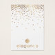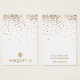 Diese Glam-Karte verfügt über Vorlagenraumhalter, in denen Sie Ihr eigenes Logo oder eine eigene Grafik zur Vorderseite hinzufügen können, und Kontaktinformationen auf der Rückseite. Das Sample-Logo erscheint hier in Gold, aber dieses Design wäre auch für eine andere Farbe schön. Über den bearbeitbaren weißen Hintergrund habe ich eine kühn gezeichnete Grafik platziert, die Imitat-Gold Konfetti darstellt, die von oben zu fallen scheinen.