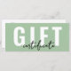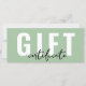 Ihr Logo Green Minimal Business Geschenkgutschein. Fügen Sie Ihr Logo an die Vorderseite, um es zu Ihrem eigenen zu machen. Dieses lustige und einfache Geschenkgutschein ist als lange horizontale Karte konzipiert, perfekt für Firmen, kleine Unternehmen oder Einzelpersonen wie Makeup-Künstler, Ästhetiker, Haarstylisten und mehr! Das aktuelle Design zeichnet sich durch eine grüne, schwarze und weiße Farbe aus, aber Sie können die Farben an den Stil Ihrer Marke anpassen. Die Vorderseite zeigt eine schicke und berufliche Mischung aus moderner Schrift und Schrift. Auf der Rückseite werden Ihr Logo und Ihre Geschäftsdetails auf der links Seite angezeigt, während auf der rechten Seite Platz zum Schreiben in die Information des Empfängers vorhanden ist. Ein elegantes und funktionales Design für ein geschmackvolles Geschenkerlebnis.