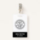 Fügen Sie Ihr Logo zu diesem einfachen Schwarzweiß-Abzeichen hinzu, um für Ihre Mitarbeiter benutzerdefinierte Markennamen-Tags zu erstellen. Passen Sie Ihren Namen und Titel an, und fügen Sie Ihre Geschäftsadresse oder zusätzliche Informationen auf der Rückseite in Weiß auf Schwarz hinzu.