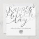 Stilvolle moderne Zwei-Seiten-Print elegante Spaß sauber glamouröse Square Business Happy Birthday Grußkarte mit Simulation von Imitaten Silber-Folie Hand Schrift Text auf einem weißen Hintergrund. Bitte beachten Sie, dass das Silber in diesem Design ein flacher, grauer Druck ist und keine metallische Folie ist. Eine perfekte Kombination aus Eleganz und elegantem Business-Luxus mit einem warmen Ambiente. Ändern Sie das Bild "Ihr Logo hier" mit Ihrem Logo oder entfernen Sie es, wenn Sie gewollt, es ohne Logo zu verwenden. Vergessen Sie nicht, auch den Vorderseiten- und Hintertext anzupassen.