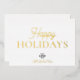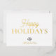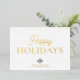 Senden Sie Ihren Kunden, Mitarbeitern und Geschäftspartnern elegante Urlaubsgrüße mit dieser eleganten, minimalistischen Corporate Happy Holidays Karte. Mit original Goldfolie "Happy Holidays" Text auf einem individuell anpassbaren, sauberen, weißen Hintergrund strahlt dieses Design sowohl Stil als auch Professionalität aus. Personalisieren Sie Ihr individuelles Logo und fügen Sie Ihre Urlaubsbotschaft auf beiden Seiten hinzu. Der weiße Hintergrund kann leicht auf den Anzug Ihrer Markenfarben umgeschaltet werden, und die Goldfolie kann für eine einzigartige Touch auf Rose Gold oder Silber umgeschaltet werden. Diese Karte ist ein bequemes Online-Set, das eine nahtlose Anpassung ermöglicht, um die perfekte saisonale Botschaft für Ihr Büro und Ihr berufliches Netzwerk zu erstellen.