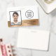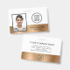 Minimales, elegantes und schicke Mitarbeiter Foto ID Abzeichen mit einem vergoldeten Imitat Metallstreifen. Passen Sie die Vorderseite mit Ihrem Logo, dem Namen des Fotos der Mitarbeiter und dem Titel Ihres Jobs an. Fügen Sie auf der Rückseite Ihren Firmennamen und andere Informationen hinzu.
