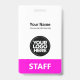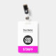 Dieses Abzeichen mit beruflichem Verwaltungsnamen ohne Foto, mit Scan-Bar und großem Firmenlogo ist einfach zu personalisieren. Ein einfaches Business-Design in Rosa und Weiß, das in Vorder- und Rücken-Größen vollständig anpassbar ist, serifenlose, einfache und moderne Schriftart und ein berufliches und klares Aussehen, perfekt für kleine Geschäftsangestellte, Chef, Gäste. Diese Business-ID-Abzeichen sind mit Lanyard, Metallklammer oder mit Retraktierbar erhältlich. Keine Mindestbestellung, aber rett Geld und genießen Sie Zazzle Rabatte bei mehreren Bestellungen!
