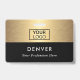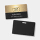 Laden Sie Ihr eigenes Logo hoch und passen Sie die Vorlagenfelder an, um individuelle Name-Tags und Mitarbeiter-ID-Abzeichen für Ihr Unternehmen zu erstellen. Sie können das Logo und die Größe des Schriftartes verändern, mehr Text hinzufügen und mit dem Anpassungstool die Farbe Schwarz ändern. Beachten Sie, dass der goldene Farbverlauf ein gedrucktes Bild ist, es wird keine echte Folie verwendet.
