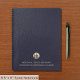 Nehmen Sie Notizen in stilvollem Ambiente mit unserem brandneuen Notizbuch mit dem goldfarbenen Logo. Der blaue lederähnliche Hintergrund und das goldgebürstete Gold-Emblem bieten einen zeitlosen Look, der perfekt für professionelle Geschäftsleute ist, um Ihre Gedanken, Ideen und wichtigen Informationen zu organisieren. Bulk Bestellungen sind ohne Minimum erhältlich. Die Sonderangebote für Massengüter sind verfügbar. Nähere Informationen finden Sie hier: https://www.zazzle.com/business/bulk.