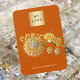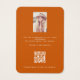 Eine Grafikkarte für Ihren handgefertigten Ohrring oder Schmuck. Ein orangefarbener Hintergrund, weißer Text. Personalisieren und hinzufügen Sie Ihr Firmenlogo und Kontaktinformationen auf der Vorderseite. Zurück: Fügen Sie Ihr eigenes Foto auf der Rückseite ein und nutzen Sie die Gelegenheit, Ihren Kunden die Geschichte Ihrer Marke zu erzählen. Nichtgewollt löschen. Fügen Sie Ihre URL dem QR-Code Ihrer Website oder Ihrem Social Media-Account hinzu.