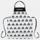 Schwarze Schürze mit einem Muster Ihres Logos. Fügen Sie den Namen Ihres Unternehmens oder die Person, die die Schürze an der Spitze in fett weißen Buchstaben.