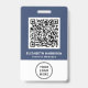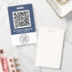 Modernes und berufliches dunkelblaues Mitarbeiter-ID-Abzeichen mit Ihrem scannbaren QR-Code (oder dem Foto des Mitarbeiters), dessen Namen und Position sowie dem Firmenlogo. Fügen Sie auf der Rückseite zusätzliche Informationen und einen optionalen Bar-Code hinzu.