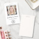 Modernes und berufliches Mitarbeiter-ID-Abzeichen mit Foto, seinem Namen in einer stilvollen Schrift und seinem Titel in einfacher Schrift sowie dem Logo Ihres Unternehmens oder Unternehmens. Fügen Sie auf der Rückseite zusätzliche Informationen und optionale QR- und Bar-Codes hinzu.