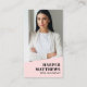 This modern vertical business card now features soft blush pink backgrounds on the bottom front and the top back, paired with a mix of black and blush pink fonts and details for a clean, stylish look. The front includes your photo, company logo, name, and title or business name, giving you a polished and professional presence. The blush pink accent at the bottom adds a warm, contemporary touch without taking away from the minimal layout.