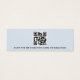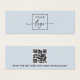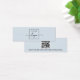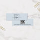 Leicht staubblaue oder beliebige farbige Mini-Produktsichtkarte mit zentrierter Logo-Vorlage und QR-Code auf der Rückseite. Die Ohrring-Hilfslinien können durch Hinzufügen und Entfernen von Leerzeichen im Vorlagenfeld und durch Verschieben des gesamten Elements im Entwurfstool eingestellt werden.