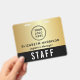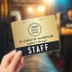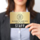 Benutzerdefinierter Zugangsausweis mit Logobranding, QR-Code-Funktion und elegantem schwarzen und goldenen Hintergrund. Die Vorderseite zeigt Ihr Logo und den Namen sowie Titel des Teammitglieds in einem sauberen, leicht lesbaren Layout, während die auffällige Bezeichnung „STAFF“ (oder "CREW", "VIP", "VENDOR" usw.) eine sofortige Erkennung aus der Ferne gewährleistet. Auf der Rückseite bietet ein großer QR-Code eine moderne Option für Check-ins, Zugangsdaten, Zeitpläne oder Zugangskontrolle - dieser Ausweis ist somit ebenso funktional wie stilvoll. Perfekt für Unternehmensveranstaltungen, Konferenzen, Produktionen und Großveranstaltungen, hilft dieser Ausweis Ihrem Team, organisiert zu bleiben und gleichzeitig eine polierte, kohärente Markenpräsenz zu stärken.