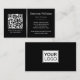 Moderne, elegante, schwarze Visitenkarten mit individuellem Logo und QR-Vorlagen. Text und QR-Code werden durch eine gedruckte, silbergraue Farbverlauf Trennlinie (nicht echte Folie) getrennt. Schriftart, Schriftart- und Hintergrundfarben können mit dem Designwerkzeug geändert werden.