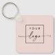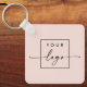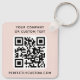 Doppelseitiger Schlüsselanhänger mit eigenem Logo, QR-Code und benutzerdefiniertem Text auf hellrot rosa oder benutzerdefiniertem Farbhintergrund. Ändern Sie die Schriftart- und Schriftart-Farben, verschieben und verändern Sie Elemente mit dem Entwurfstool.