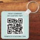 Doppelseitiger Schlüsselanhänger mit eigenem Logo, QR-Code und benutzerdefiniertem Text auf einem hellen Aquablau oder benutzerdefiniertem Farbhintergrund. Ändern Sie die Schriftart- und Schriftart-Farben, verschieben und verändern Sie Elemente mit dem Entwurfstool.