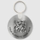 Moderner Schlüsselanhänger für Ihr Unternehmen oder Ihre Organisation mit einem silberfarbenen Imitat mit metallischem Hintergrund. Fügen Sie Ihr Logo, QR-Code und zwei Textzeilen, wie z. B. Ihren Firmennamen, Slogan, danke, oder verlass leer.