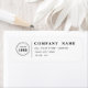 Dies ist ein benutzerdefiniertes Logo-Rücksendelabel mit Ihrem eigenen Logo und Ihrem in 4 Zeilen auf weißem Hintergrund angepassten. Text und Logo werden durch eine vertikale Linie getrennt.