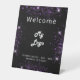 Logo schwarz lila Glitzer Begrüßungsgeschäft Sockelschild