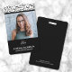 Ein lustiges, aber einfaches Schwarz-Weiß-Foto, Name-und Titelmitarbeiter-Abzeichen für ein Firmenbüro oder ein kleines Unternehmen. Fügen Sie Ihr eigenes Logo hinzu, um es mit Ihrem Branding zu versehen. Niedliches Schwarz-Weiß-Punkt- und Stripmuster oben für einen niedlichen, aber dennoch beruflichen Akzent. Sie können alle Texte und Hintergründe in jede beliebige Farbe ändern und sogar auf andere Schriftart umschalten, die besser zu Ihrem Branding passen. Sie können sogar Muster und Zeilenfarben ändern. Logo Schwarz-weiß Name und Titel Abzeichen für Mitarbeiter