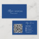Simple white on blue logo name script hair makeup qr code with a brushed script typography add your business photo . Add your social media. With an elegant signature script font, all the colors are editable , add your logo.Move the letters to create your logo.