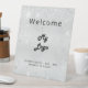 Ein Imitat silber aussehender Hintergrund, schwarzer Text. Dekoriert mit Imitaten Glitzer Staub. Mit dem Text: Willkommen. Personalisieren und fügen Sie Ihr Firmenlogo und Ihren Text hinzu.