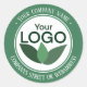 Green Round Company und Logoaufkleber mit individualisierbarem Text. Fügen Sie nach Ihrer Wahl Ihr Firmenlogo, Ihren Slogan, Ihre Adresse oder Ihre Webadresse hinzu. Der Text erscheint in einem Bogen oder in einer Krümmung um Ihr Logo. Versuchen Sie, wie es mit Ihrem Text und Logo aussehen wird, bevor Sie bestellen. Hier ist das Logo auf einem grünen Hintergrund mit weißem Text. Wenn Sie andere Farben unter Ihrem Text auf dem Hintergrund gewollt haben, können Sie die Farbe im Design-Tool weiter ändern, wählen Sie eine, die Ihr Logo oder Ihre Marke ergänzt.