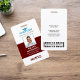 Fügen Sie die Details Ihrer Mitarbeiter auf diesen Abzeichen des medizinischen Personals mit ihrem Foto und Namen hinzu. Es stehen auch Felder zur Eingabe des Namens Ihres Krankenhauses oder Ihrer Gesundheitseinrichtung, ihres Titels und ihrer Abkürzung, der Mitarbeiternummer zur Verfügung. Fügen Sie Ihr Logo und den Titel oder die Rolle des Mitarbeiters in fett gedruckten Texten hinzu, damit Sie sich leicht identifizieren können. Passen Sie bei Bedarf einen Barcode auf der Rückseite an, zusammen mit Informationen zur Rücksendeadresse einschließlich der Telefonnummer Ihres Unternehmens