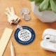 Runder, blauer und weißer Schlüsselanhänger mit Ihrem Logo und eigenem Text. Ändern Sie Schriftart und Farben, verschieben und verändern Sie Elemente mit dem Entwurfstool.