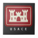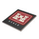 Dunkle Version des Scharlachrots der US-Armee und weißes Schlosslogo auf schwarzem Hintergrund mit weißem Text