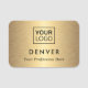 Modernes Namensschild mit Vorname, Titel und individuellem Logo auf einem goldenen Farbverlaufshintergrund. Mit dem Design-Tool können Sie Schriftart ändern, das Logo und andere Elemente verschieben und verändern.