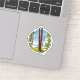 Retro Cartoon Skilogos mit Bergen und Schneebaum.