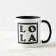 Lola Coffee Tasse. Diese Tasse ist ein Geschenk für jede Großmutter, die Lola statt Oma heißt. (Lola bedeutet Großmutter oder Großmutter in Tagalog / Philippino.) Das in Schwarz-Weiß gehaltene, quadratische Design, in dem Lola steht, ist einfach, minimalistisch, elegant, sauber, modern und zeitgemäß.