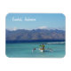 Das weiße Auslöseboot mit seinem stehenden Piloten im Vordergrund dieses Fotos schwimmt über ein türkisfarbenes, tropisches Meer mit dunkelblauem Wasser, einem Streifen mit weißen Surfen und bräunlich-lila Bergen im Hintergrund. Einige Wellen weißer Wolke im hellblauen Himmel hängen um den Gipfel der Berge, die auf der Insel Lombok, in Indonesien sind. Das Boot, auf dem ich bin, ist von einer der drei Gili-Inseln, die zwischen Lombok und Bali liegen, aus. Der Bootsmann und sein Handwerk sind hell gefärbt; er trägt ein gelbes Shirt mit einem blauen Hut, während er an einem Ende seines weißen Kanus steht und das lange Ruderpaddel bedient. Das Innere des Schiffes ist ebenfalls gelb und hat einen hellgrünen Baldachin. Zwei weiße Arme erstrecken sich von jeder Seite des Schiffes und verbinden sich mit dem schmalen, weißen Steg mit roten Klammern. Übrigens war das Schnorcheln an diesem Tag großartig! Copyright Gail Storrs 2006.